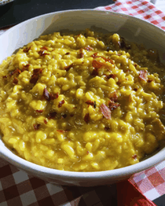 Με κρεμμύδι, κοτόπουλο, σαφράν & prosciutto crudo