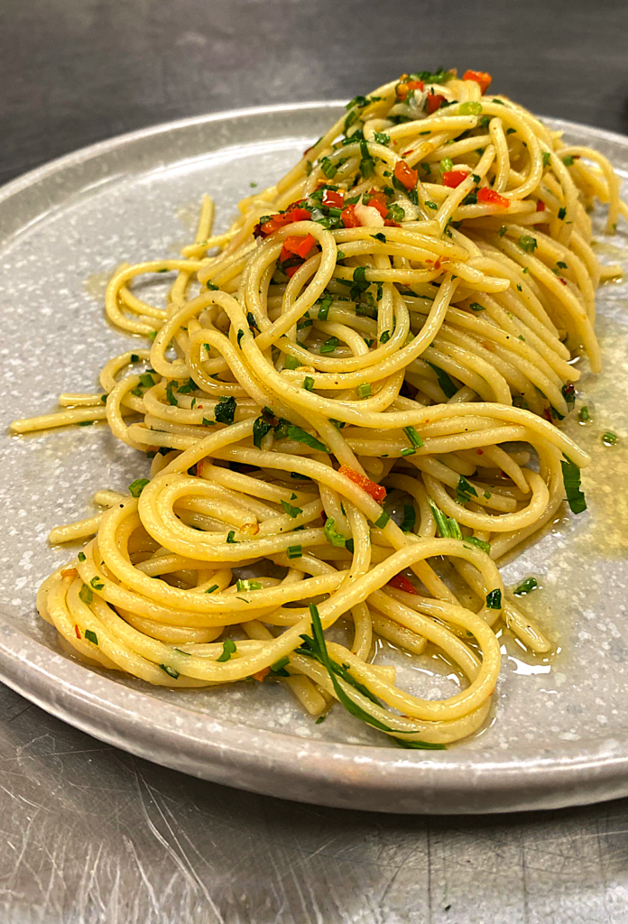 Σπαγγέτι με σκόρδο, κόκκινη πιπεριά τσίλι, ελαιόλαδο & μαϊντανό