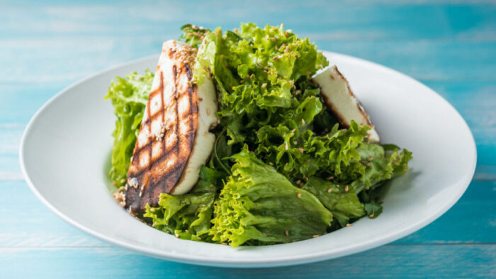 Λόλα, iceberg, αρωματισμένο ψητό κοτόπουλο, μπέικον, χειροποίητα croutons, caesar’s sauce & flakes παρμεζάνας