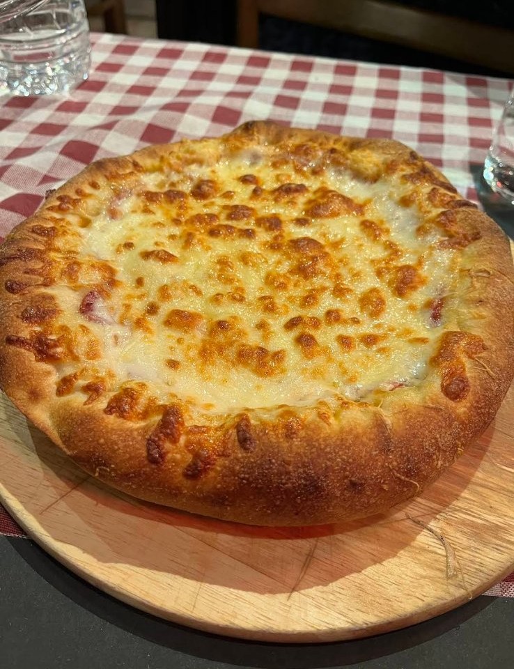 Σάλτσα ντομάτας, μοτσαρέλα, gouda, ζαμπόν & μπέικον